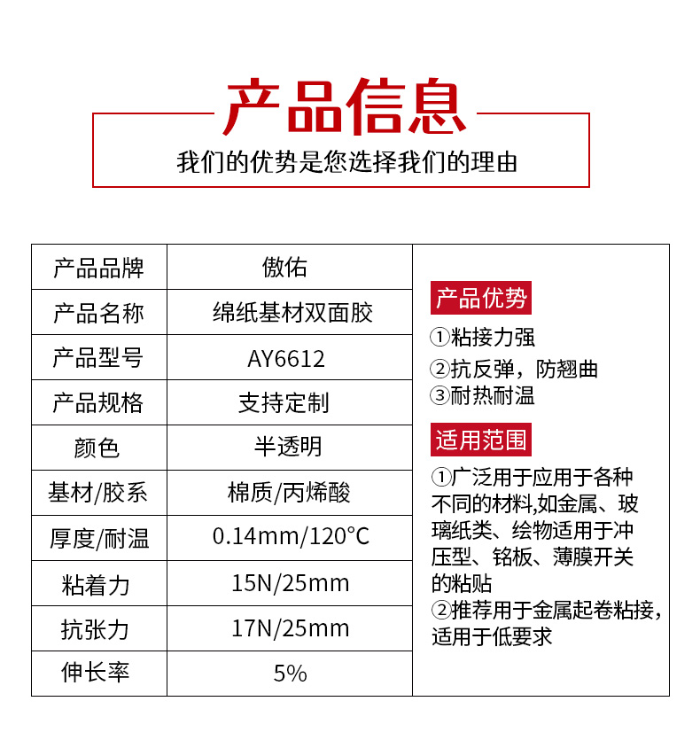 金属卷材接驳双面胶AY6612-傲佑实业(上海)有限公司